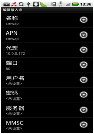 中国移动——接入点:CMWAP;代理:10.0.0.172;端口:80