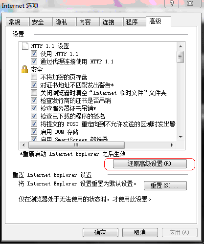 请点击“工具”→“Internet选项” ,选择“高级”页中的“还原高级设置”按钮