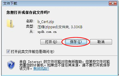 (2) 将b_Cert.zip文件下载并保存至本地后,解压缩到任一目录。在该目录下,双击文件Root_CA.cer。