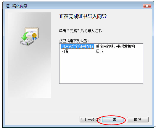 (5) 选择证书存储在“受信任的根证书颁发机构”区域中,并点击“确定”。