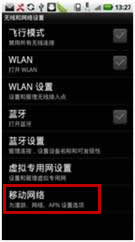 (1)在手机的主页面中,按MENU,调出“设置”菜单,打开“设置” -无线和网络设置-移动网络-接入点名称,将手机网络设置中的移动网络设置为WAP上网方式。