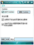 (2)如果您使用的是windows mobile操作系统手机,请检查是否关闭了浏览器的Cookies,如下图所示,“允许Cookies”复选框应该打勾。