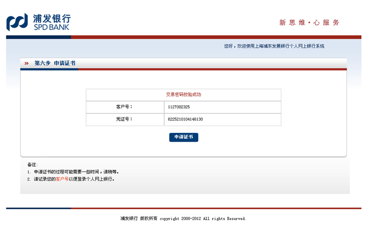 1. 如果您尚未申请我行的移动证书(二代U-KEY),请到上海浦东发展银行网点办理,咨询电话:95528。