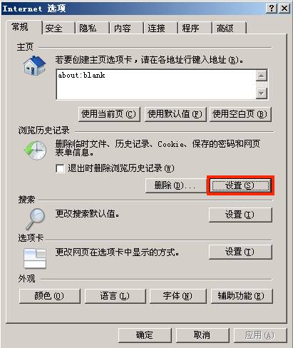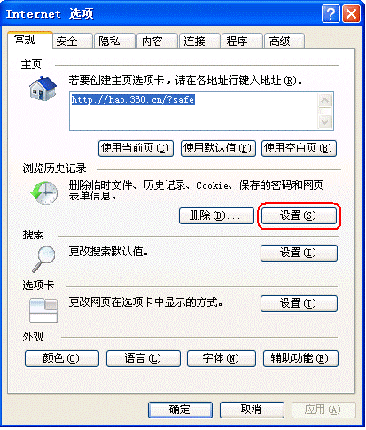请点击“工具”→“Internet选项” ,选择“常规”页中“浏览历史记录”的“设置”按钮
