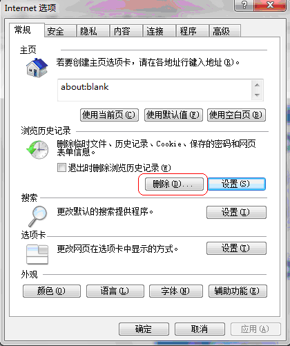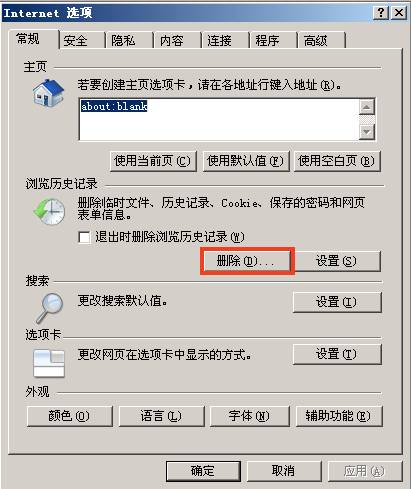 1、 清理IE缓存。以IE8为例,请点击“工具”,选择“删除”,勾选“Internet临时文件”,点击“删除”按钮进行清理。