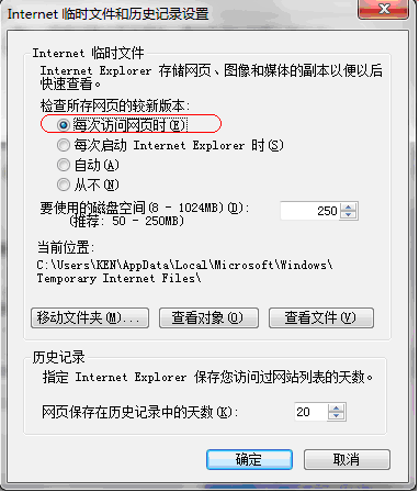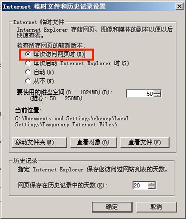 在“检查所存网页的较新版本”中,选择“每次访问网页时”。