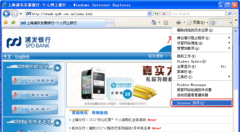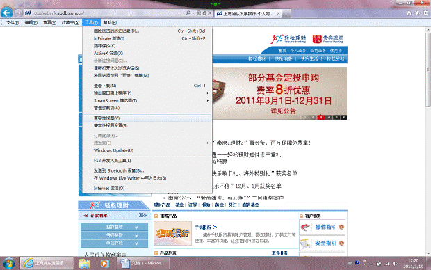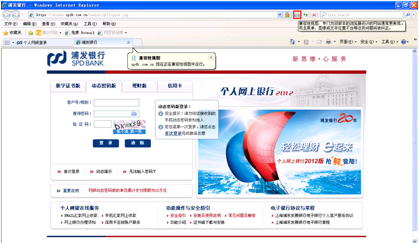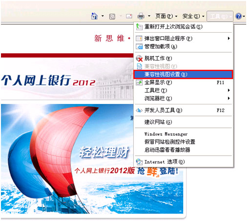 1、 使用IE8版本以上访问网银的客户,在访问网银时请打开“兼容性视图”。设置步骤如下: