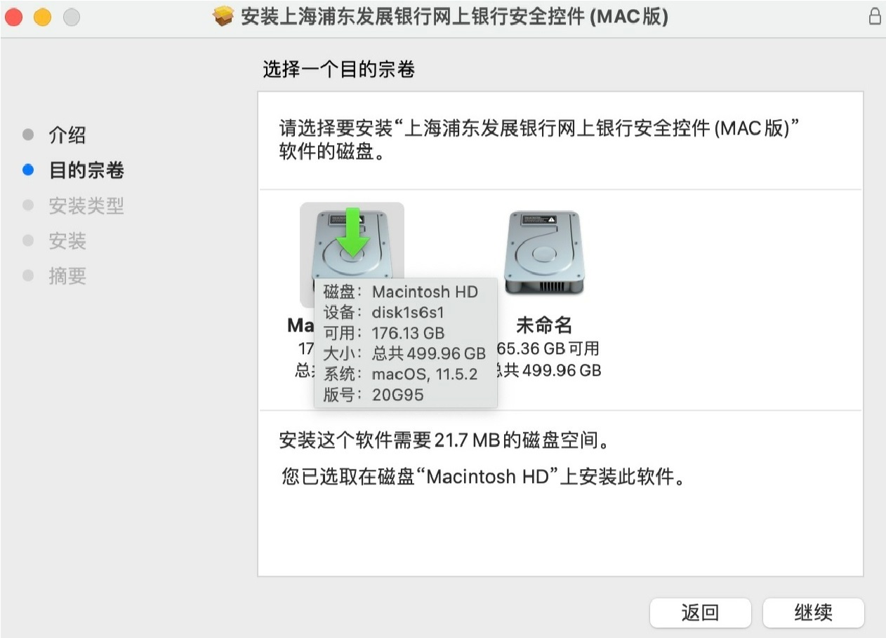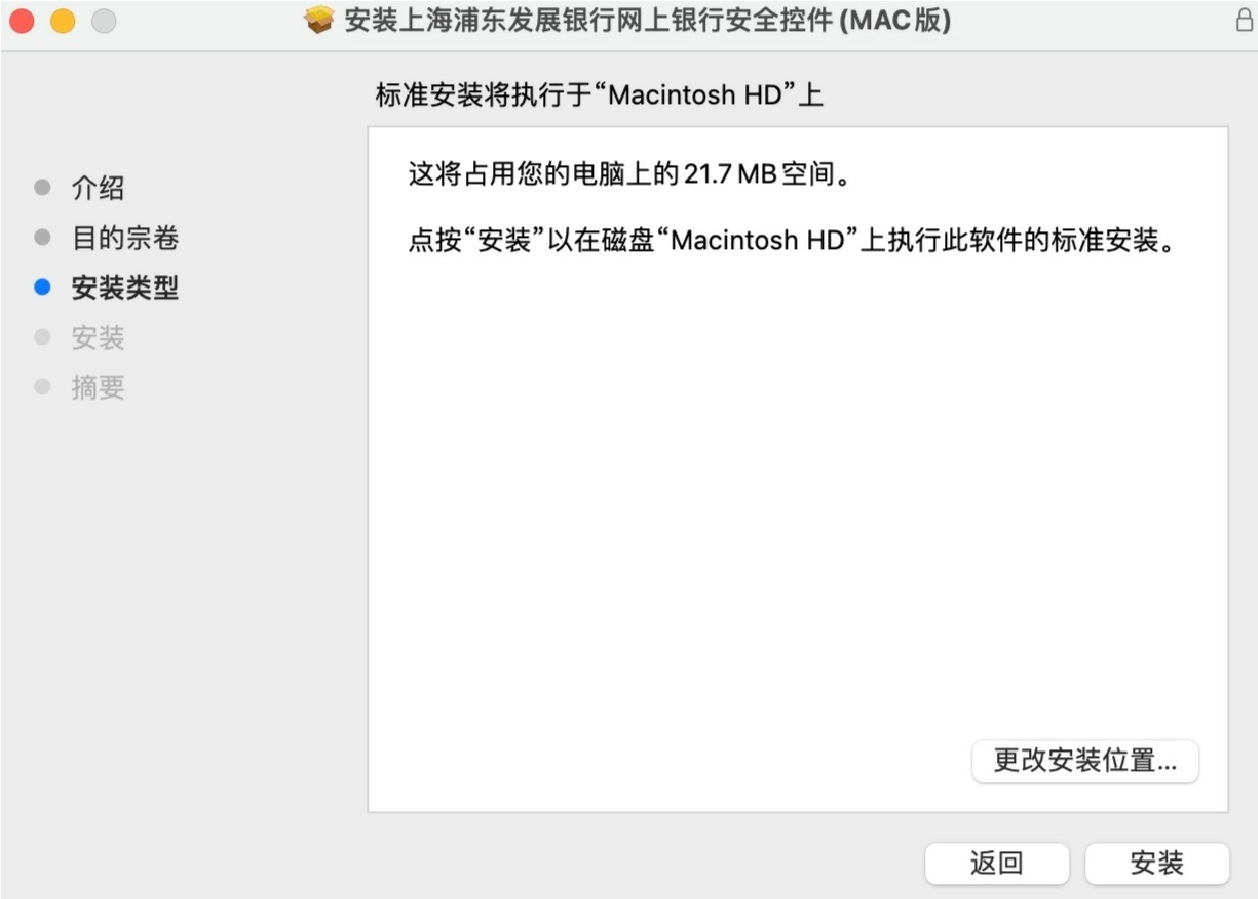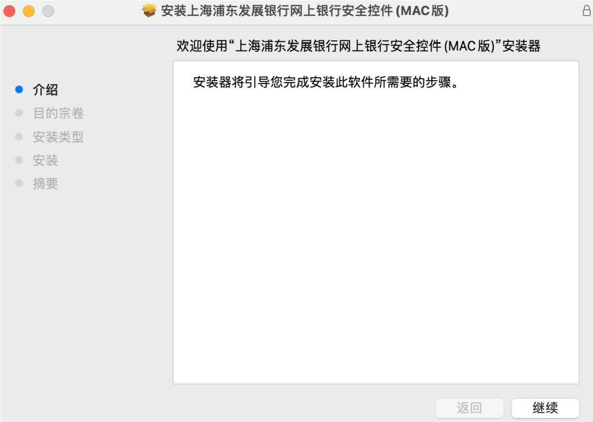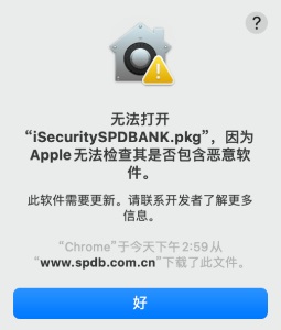 2.双击iSecuritySPDBANK.pkg文件,会弹出如下弹窗: