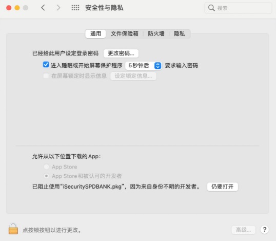 3.如果弹出上面的弹窗,请移步 系统偏好设置>安全性与隐私>通用 即如下界面,点击 仍要打开 若弹框,选择打开