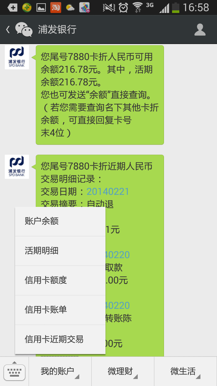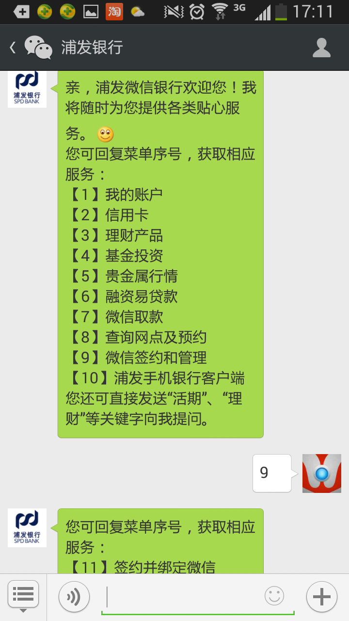 语音:您可以发送语音短信“我的余额”、“余额”、“活期”、“理财”到微信公众账号,也可以获取相应功能。