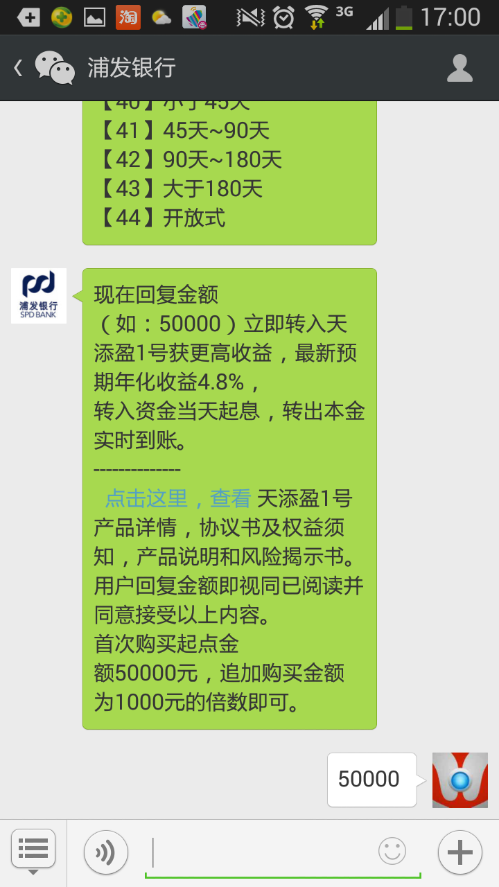 关键字:您可以发送“我的余额”、“余额”、“活期”、“理财”等与功能相关的关键字获取相关功能。