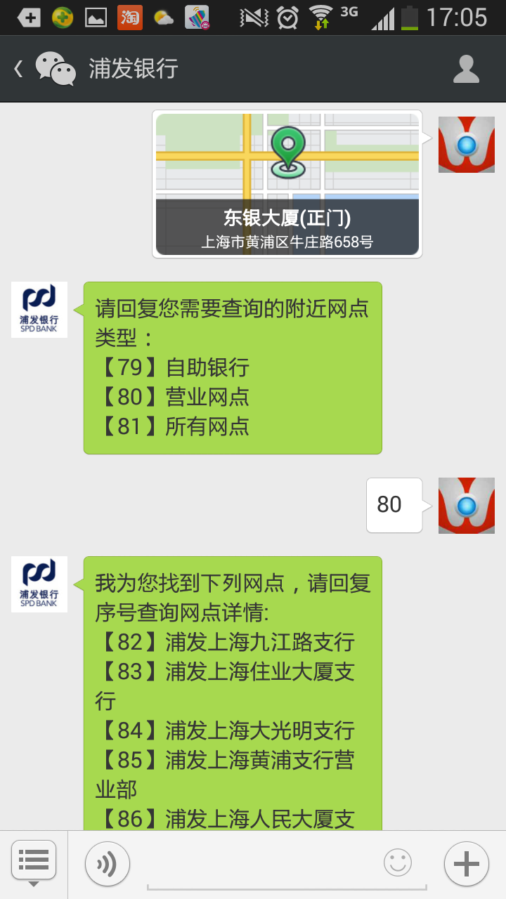 微信中发送您所在位置,查询您身边的我行营业网点;